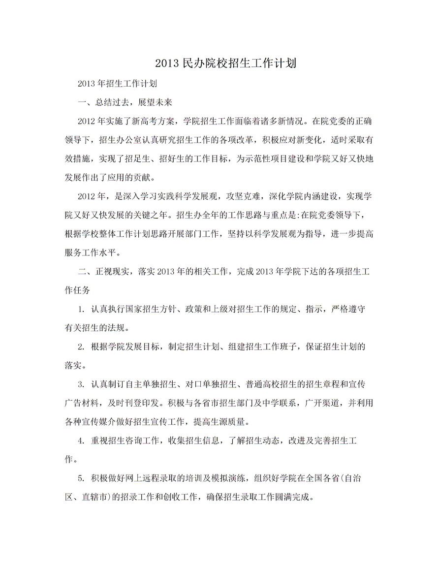 2013民办院校招生工作计划2013民办院校招生工作计划2013年招生工作计划一总结过去展望未来2012年实施了新高考方案气瓶 现场处置方案 .pdf气瓶 现场处置方案 .doc见习基地管理方案
