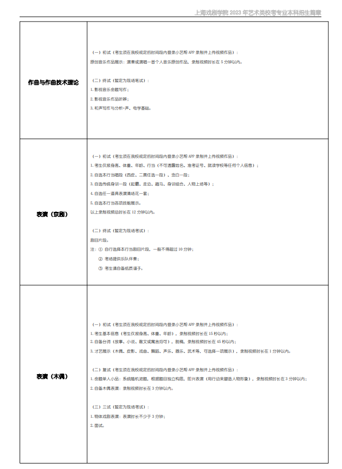 上海戏剧学院2023年本科招生简章内容